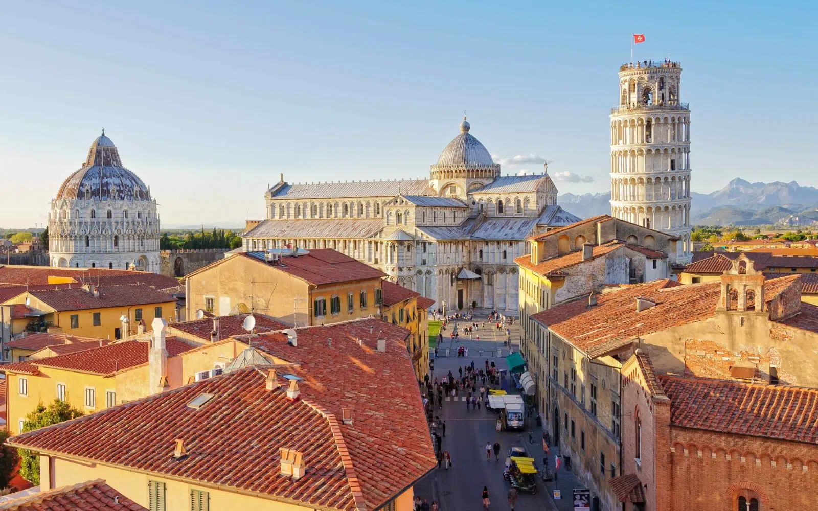 En compagnie de guide francophone vous remontez la rue commerçante et découvrez la ville sous un angle peu connu, en suivant les berges du fleuve Arno. Vous atteignez la piazza del Duomo où se trouvent le baptistère, la cathédrale Notre Dame de l’Assomption et son célèbre campanile : la tour penchée de Pise, symbole de l’Italie, élevée en 1173.