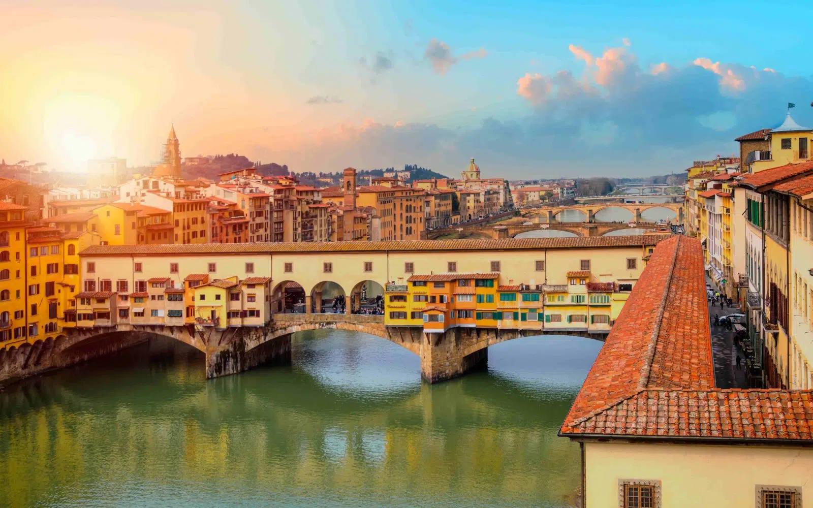 Traversez l’un des plus vieux ponts de Florence, le Ponte Vecchio qui enjambe le fleuve Arno. Le point de vue est magnifique pour admirer les deux côtés de la ville. Votre chemin vous conduit jusqu’à la Piazzale Michelangelo au sommet de la colline du même nom offrant une vue magnifique sur la cité florentine.