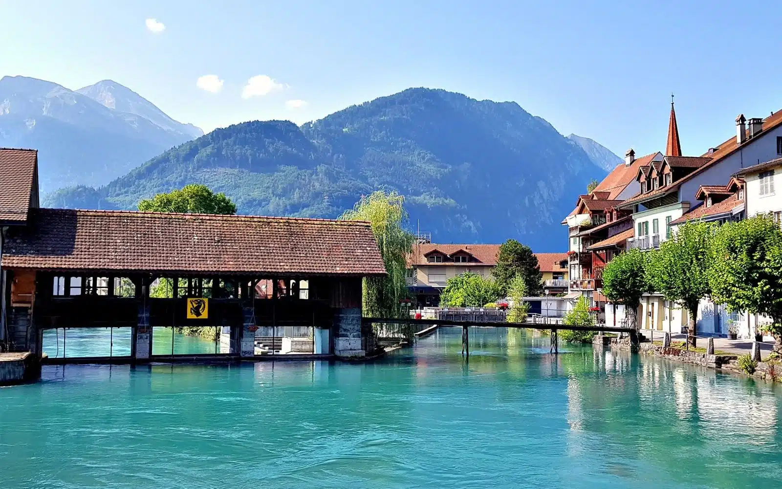 Départ de Interlaken à bord du GoldenPass Express, le deuxième train de la ligne GoldenPass. Ce nouveau train, inauguré en 2023, traverse le Simmental jusqu’à la vallée de Zweisimmen, une région préservée de Suisse. À son bord, vous découvrirez l’Oberland bernois avec ses chalets colorés et églises blanches. Le GPX, bleu foncé métallique, est capable de gérer l’écartement changeant des voies à Zweisimmen.